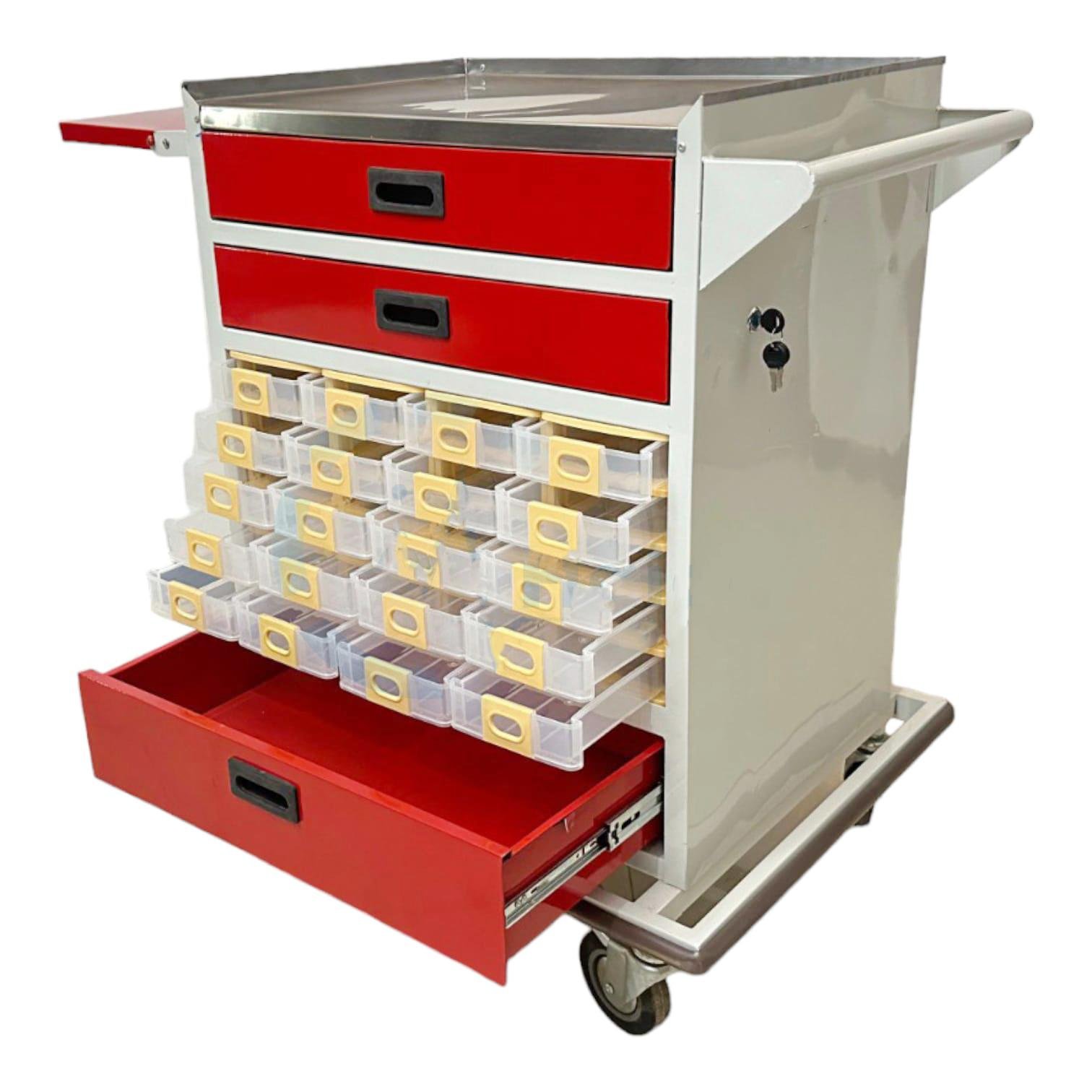 Ample Storage & Organization: Spacious trays, shelves, and lockable drawers provide organized space for instruments, medications, files, and patient care supplies, keeping everything within easy reach.