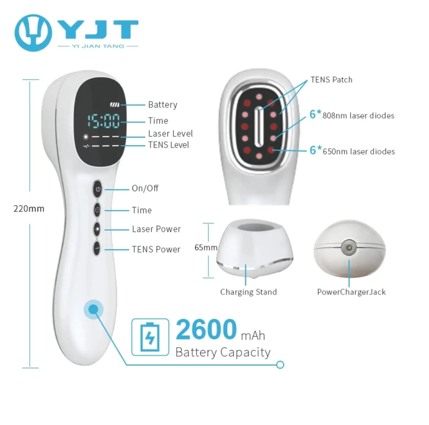 Dual-Action Pain Relief: Laser targets the root cause of inflammation while TENS provides immediate symptomatic relief by interrupting pain signals.